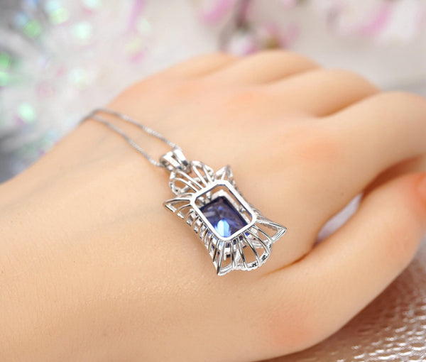 Large Baguette cut Tanzanite Jewelry Royal Flower Style