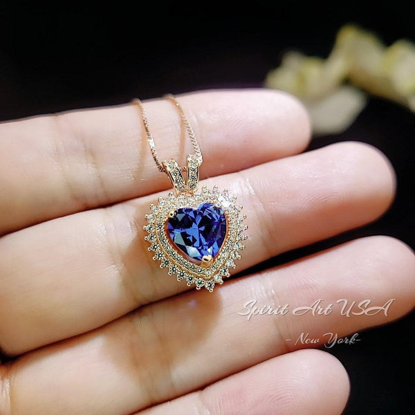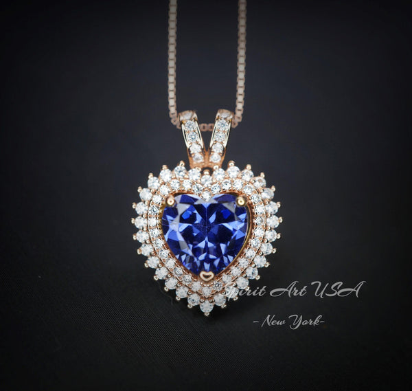 Double Halo Tanzanite Heart Jewelry Rose gold Style