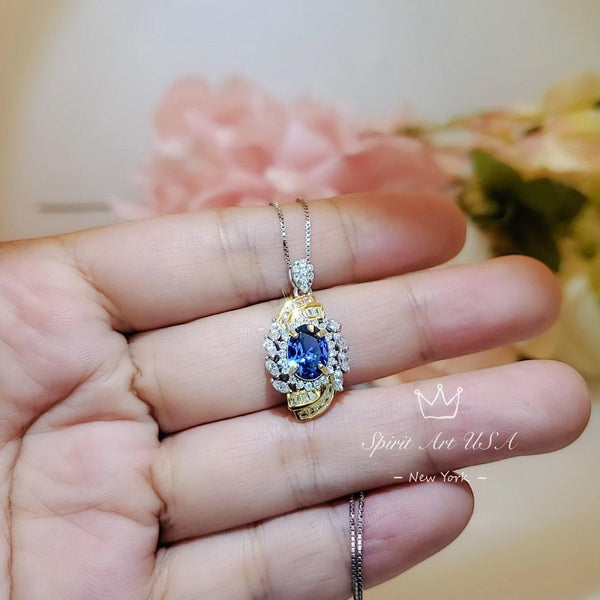 Main Stone: Lab created Energetic Deep Blue Tanzanite Gemstone.