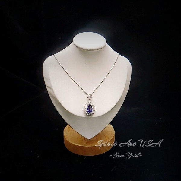 Teardrop Tanzanite Necklace - 18 k White Gold @ Sterling Silver - 3 CT Blue Tanzanite - Gemstone Flower December Birthstone #900