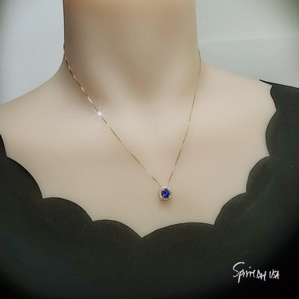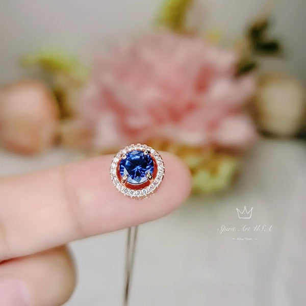 Main Stone: 6mm Lab created Energetic Deep Blue Tanzanite Gemstone.