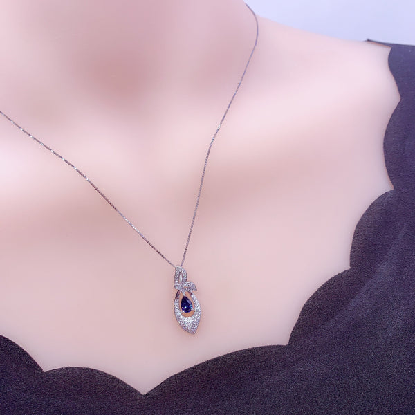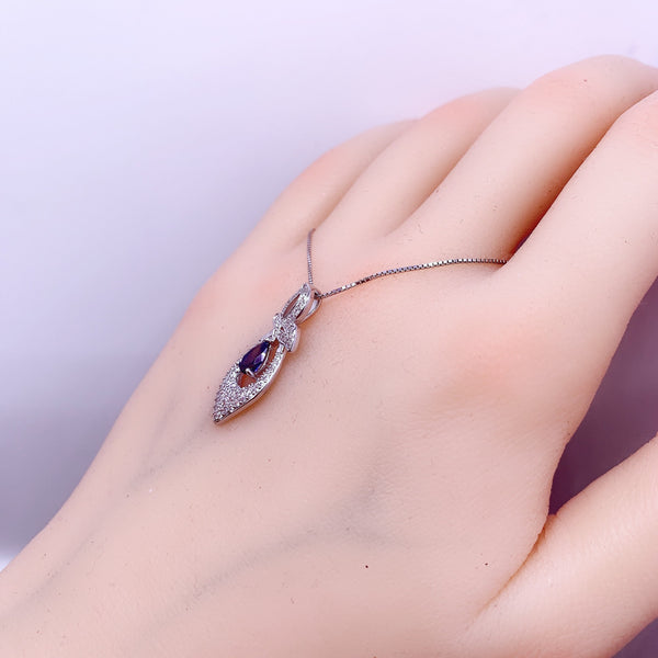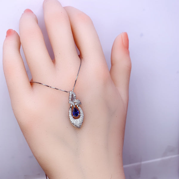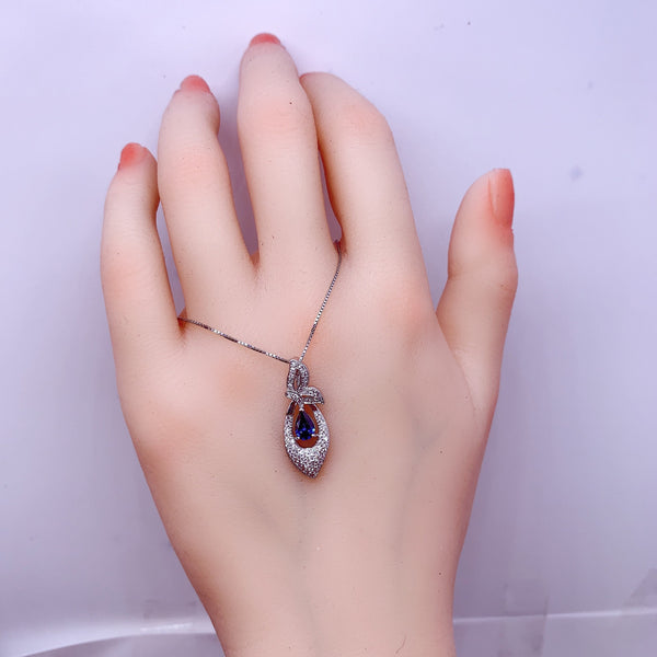 Tiny Teardrop Tanzanite Necklace - 18KGP @ Sterling Silver - Gemstone Butterfly Style - Lab Created Blue Tanzanite Pendant #320