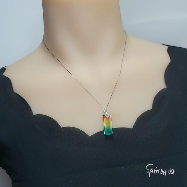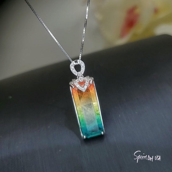 Large Orange Green Tourmaline Jewelry Rectangle Style
