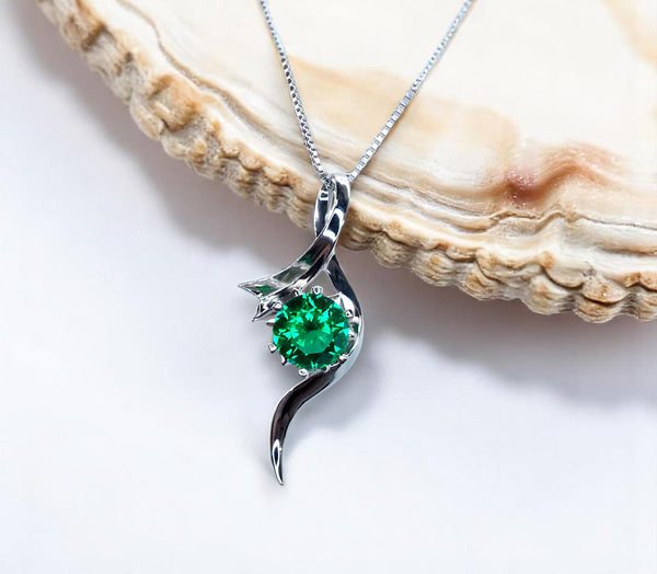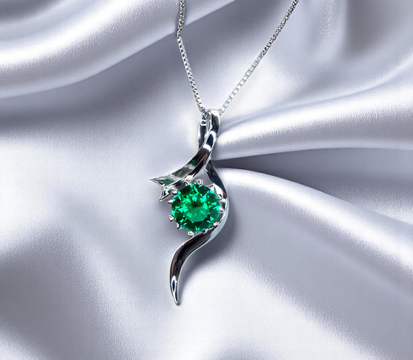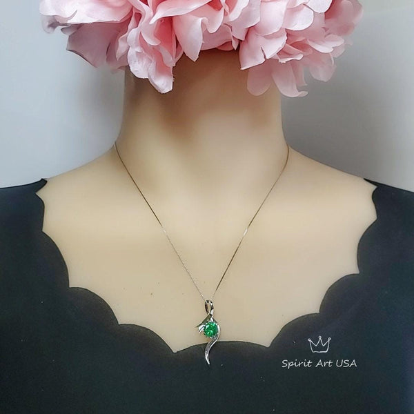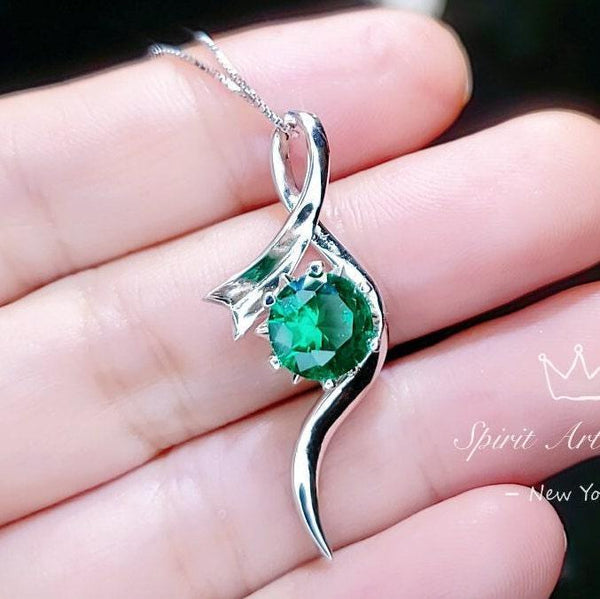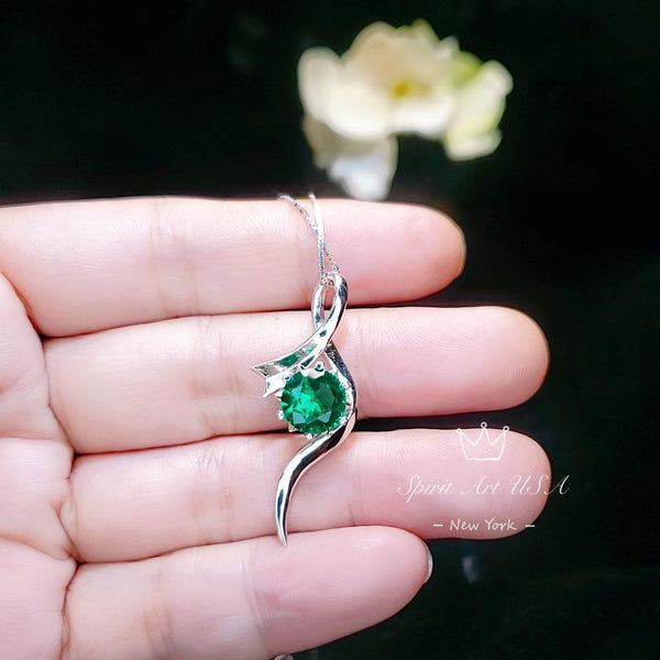 2 CT Round Emerald Necklace Sterling Silver Bow Swirl Infinity Green Emerald Pendant Green Gemstone Jewelry May Birthstone #509