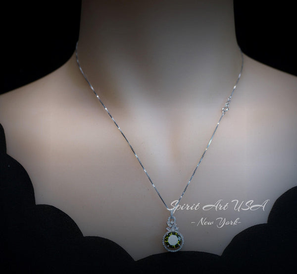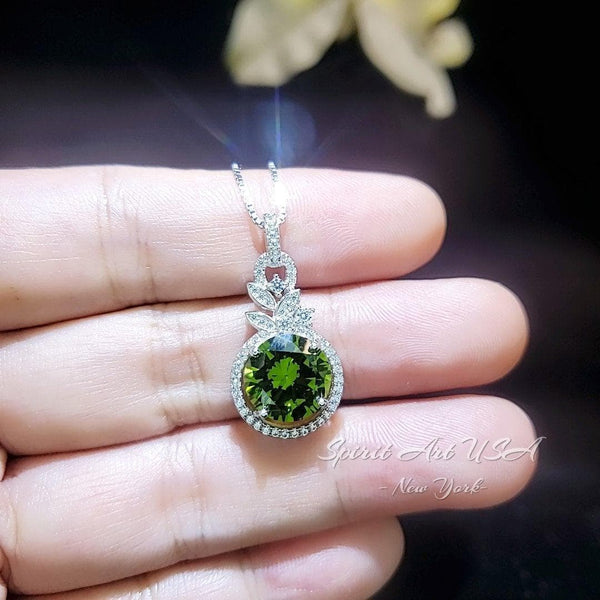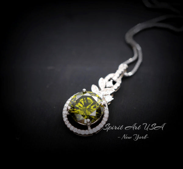 4 CT Green Peridot Necklace - 18KGP Sterling Silver - Gemstone Flower Petal - August Birthstone - Unique Design Peridot Pendant #952