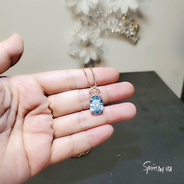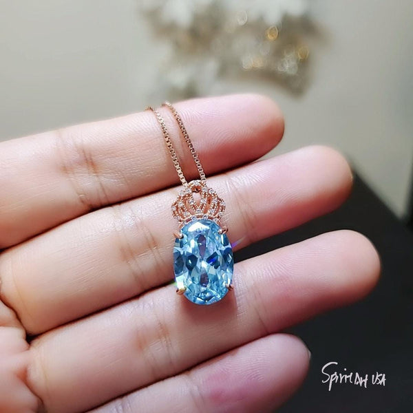 Large Oval Cut Blue Aquamarine Jewelry Rose gold Crown Style