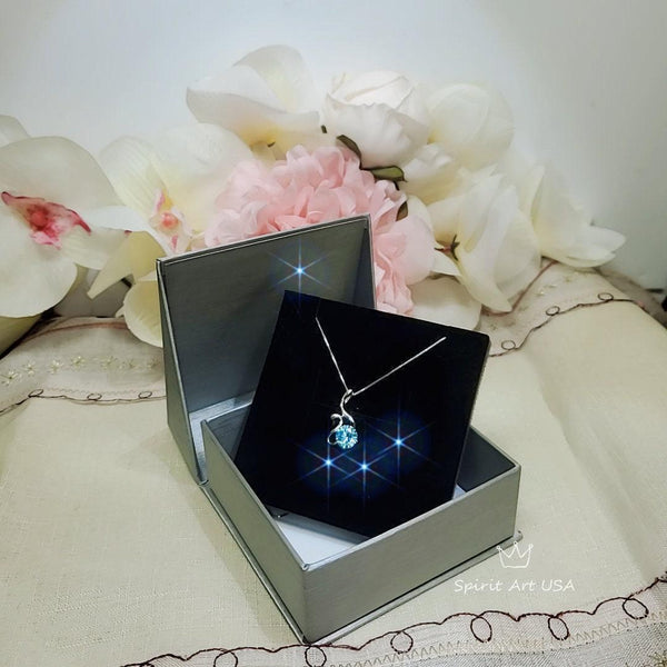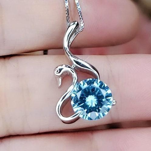 8mm 2 CT Aquamarine Necklace - 18KGP Sterling Silver - Swan Pendant - Solitaire Aquamarine - Simple Aquamarine Jewelry #149