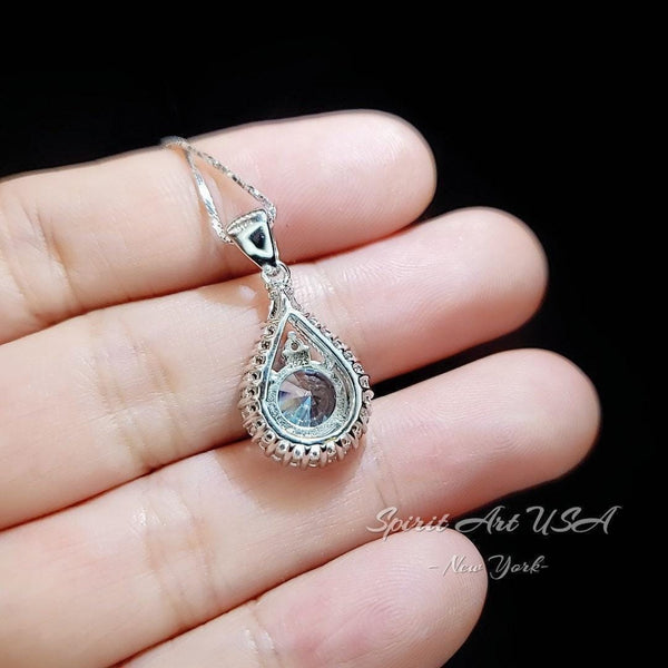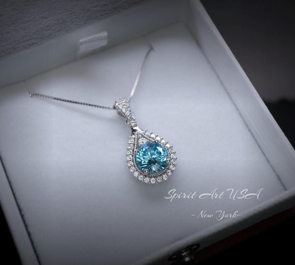 8mm Round Aquamarine Necklace Sterling Silver 2ct Teardrop Style White Gold plated March Birthstone #335