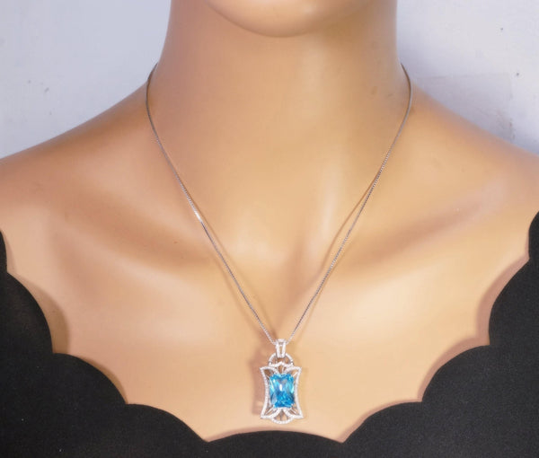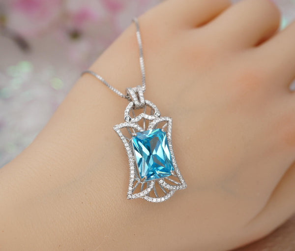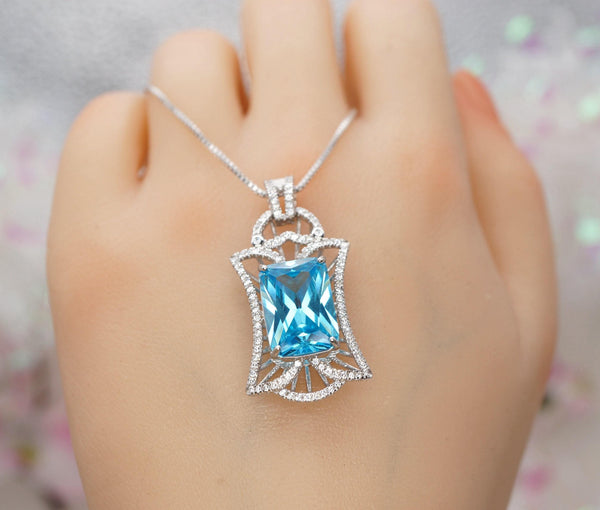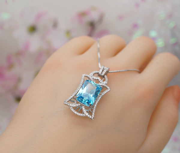 Blue Topaz Jewelry Rectangle Royal Flower Style