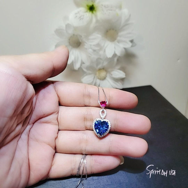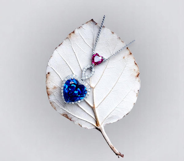 💙 Elegant Double Heart Blue Sapphire Necklace