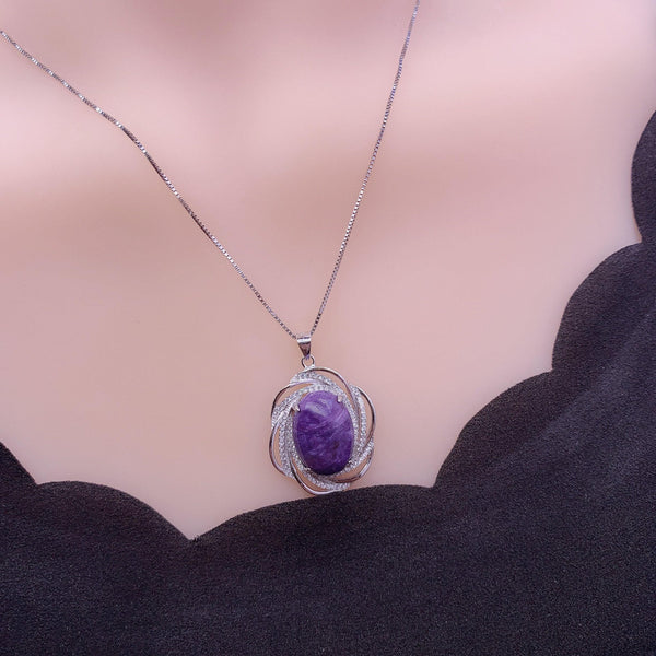 Natural Charoite Gemstone Jewelry unique Artisan design full sterling silver made