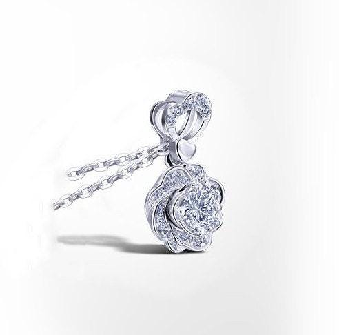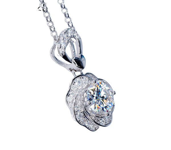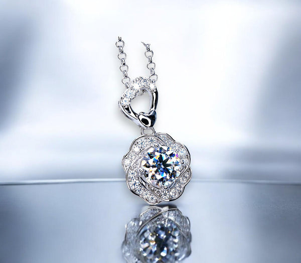Genuine Moissanite Gemstone Necklace - GRA Certificate Gemstone Jewelry Round Cut Rose FlowerJewelry #792