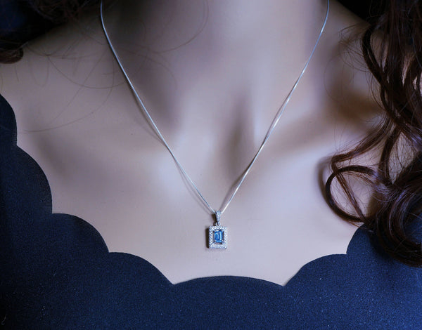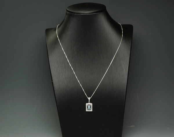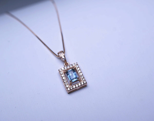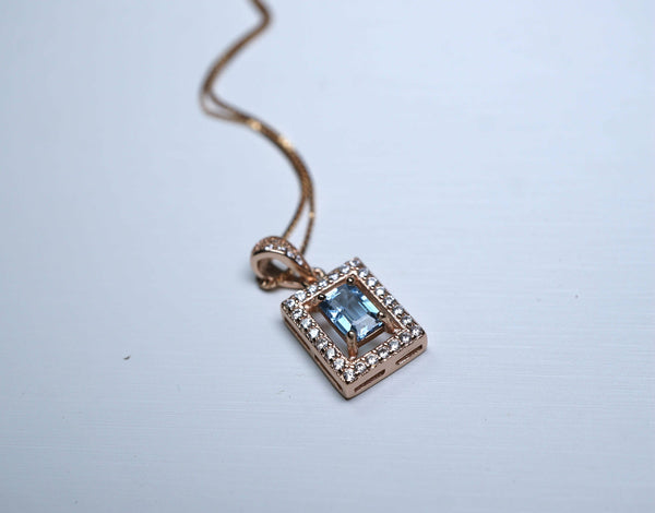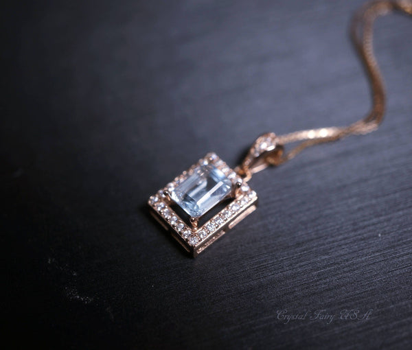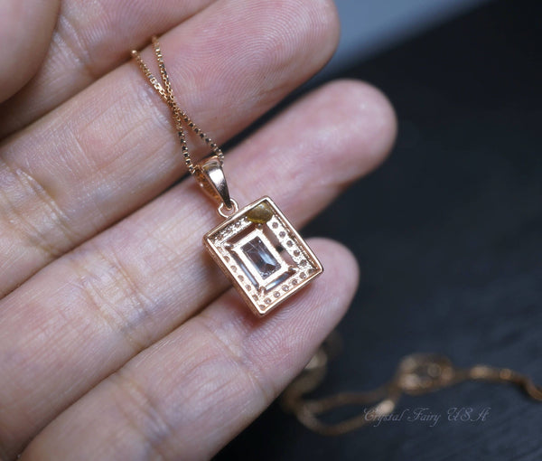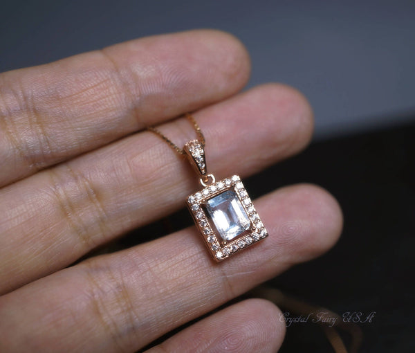 Genuine Rectangle Topaz Necklace, Rose Gold Minimalist Sterling Silver Box Chain Solitaire Natural Topaz Pendant