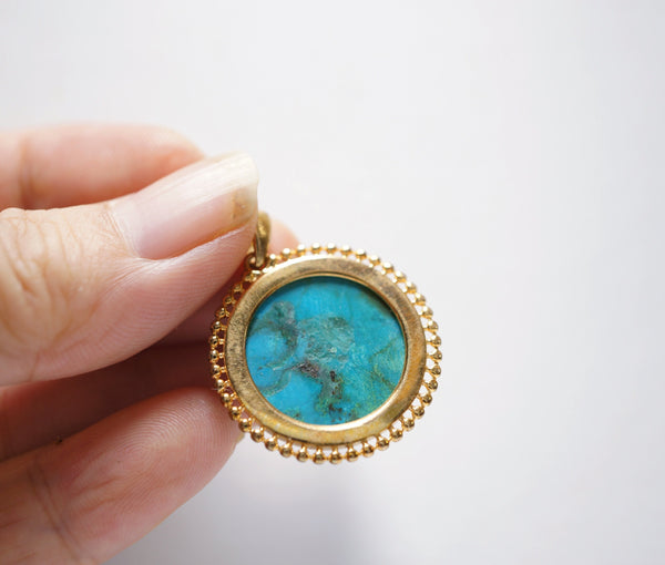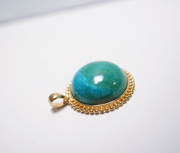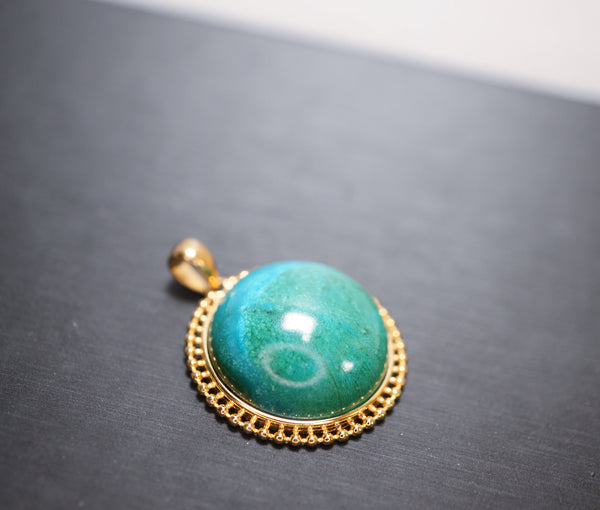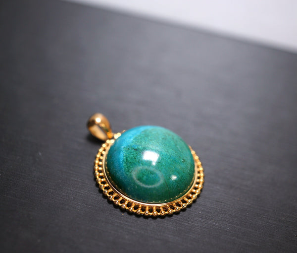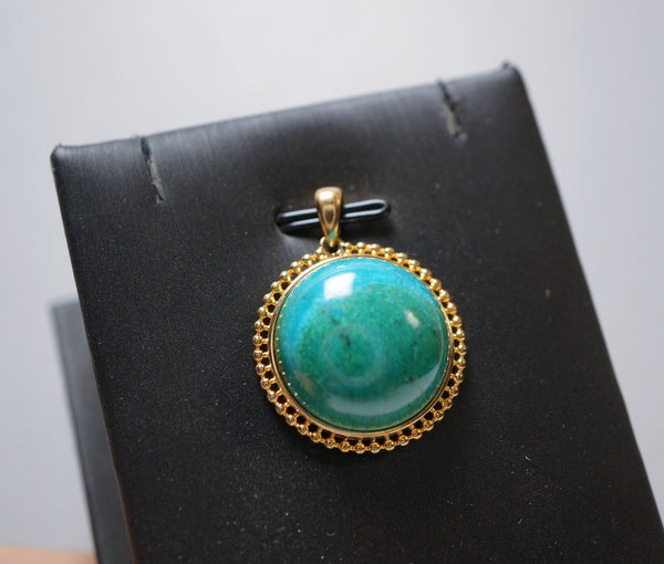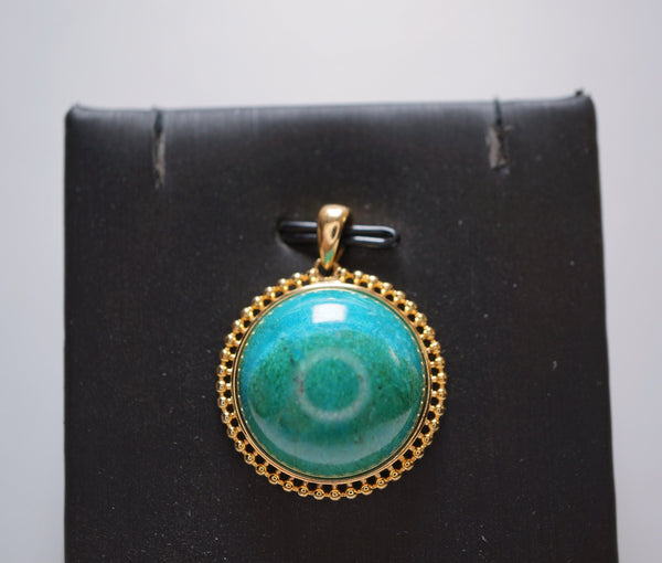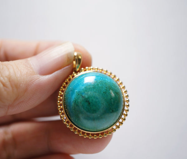 Large Genuine Turquoise Pendant - Gold Coated Sterling Silver Round Natural Green Turquoise Pendant