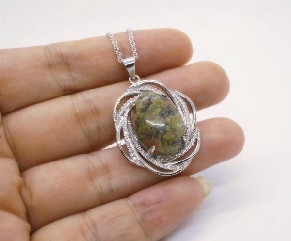 Large Unakite Jewelry High Quality unique Artisan design full sterling silver made