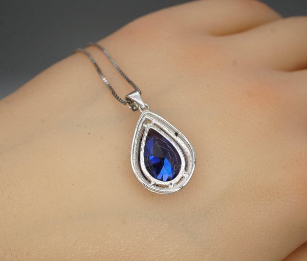 Teardrop tanzanite Jewelry unique Artisan design full sterling silver made