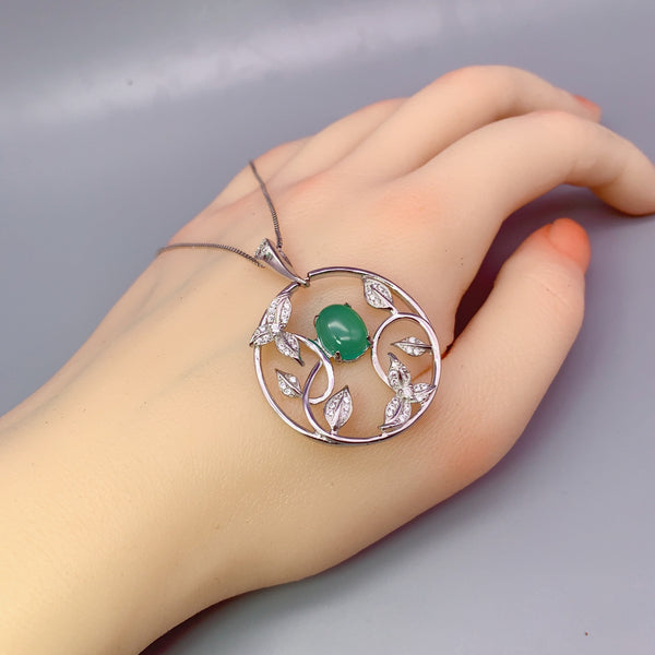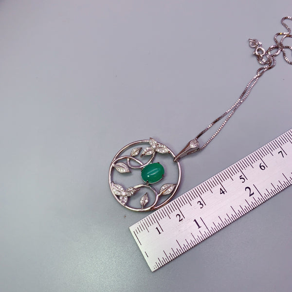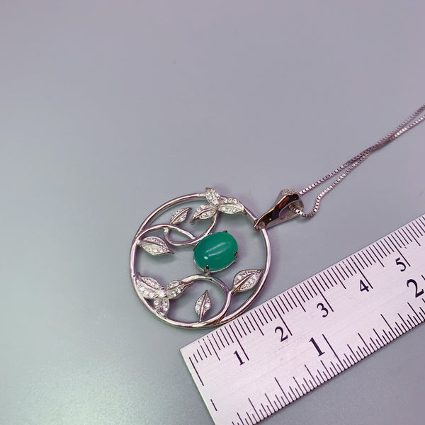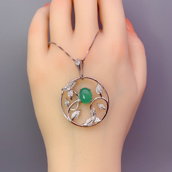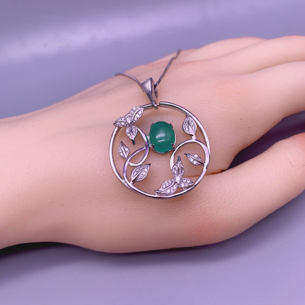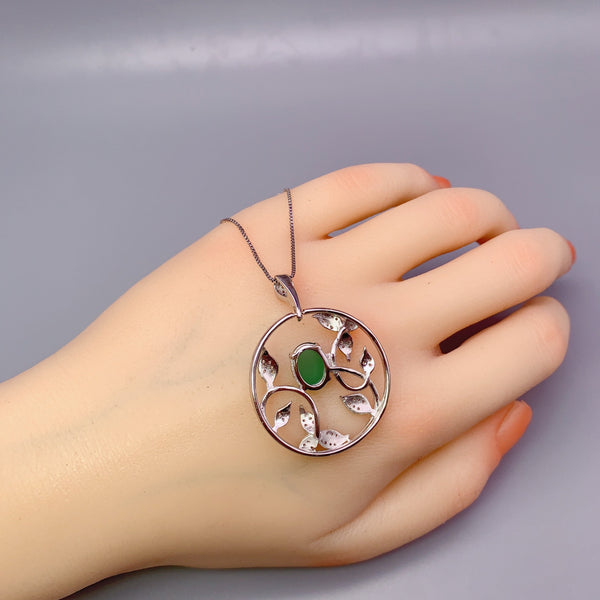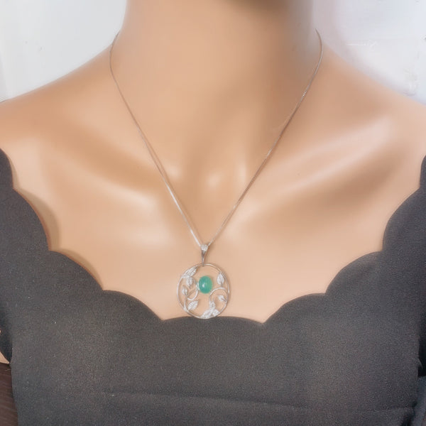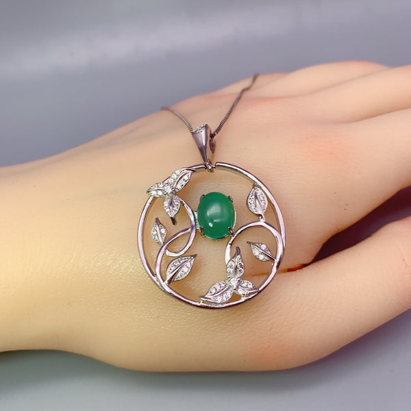 Natural Green Agate Necklace Sterling Silver Large Round Multi Leaves Leaf High Energy Genuine Green Onyx Necklace