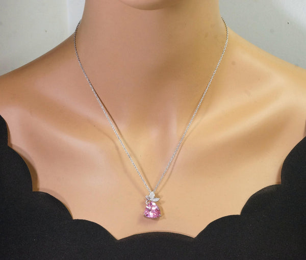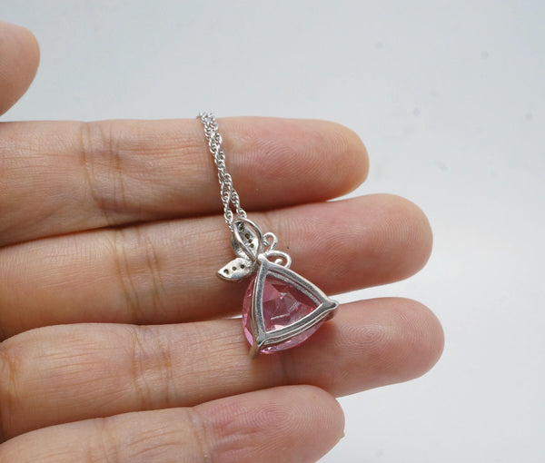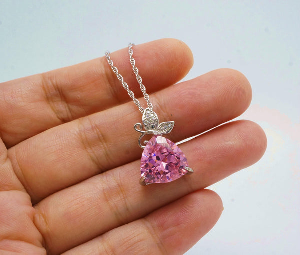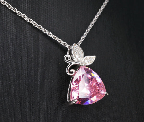 Large Trillion Pink Topaz Jewelry decorated with Butterfly bail