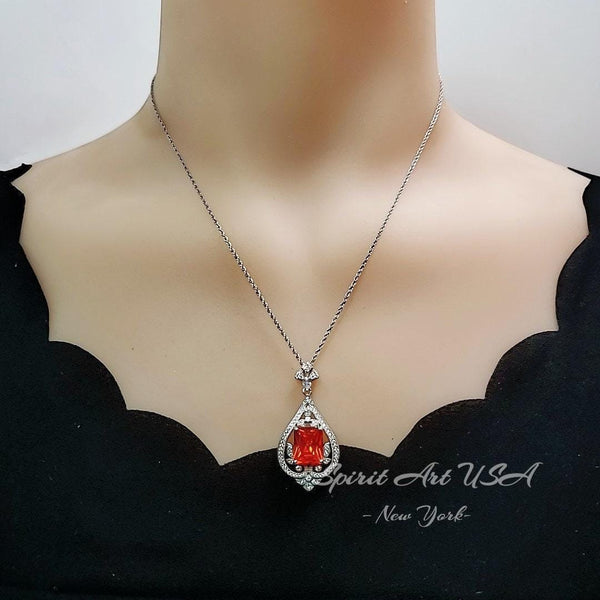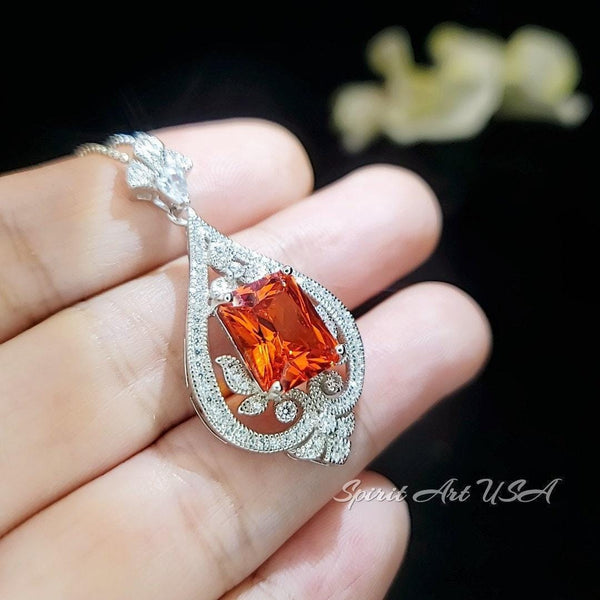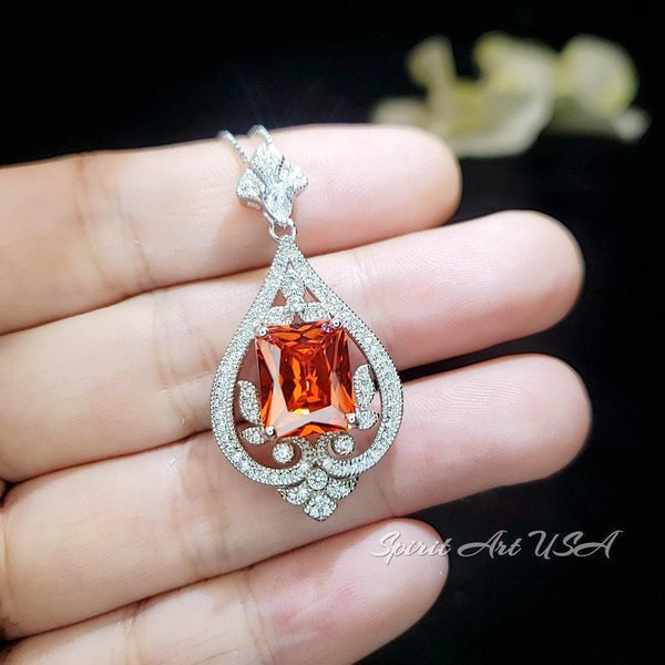 Large Orange Sunstone Jewelry Spirit Flower Style