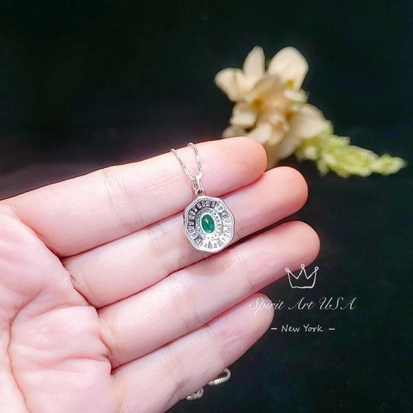 Materials: 925 sterling silver, Emerald gemstone, 18kgp, rose gold.
