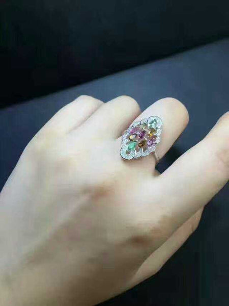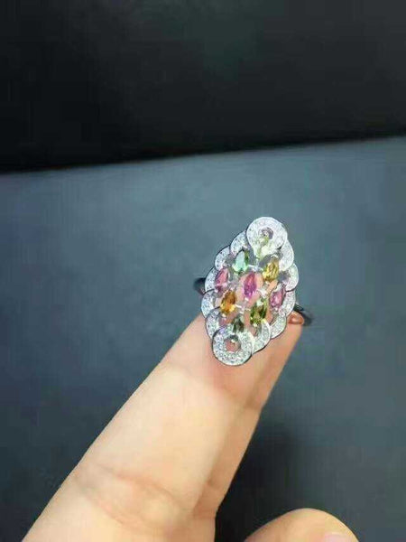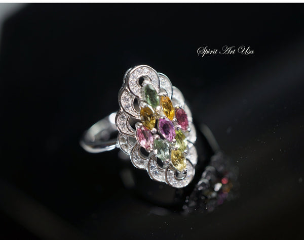 Tourmaline Ring, Engagement Ring, Promise Ring, Multi Gemstone Sterling Silver Cz Ring, Anniversary Claddah Ring Yn036