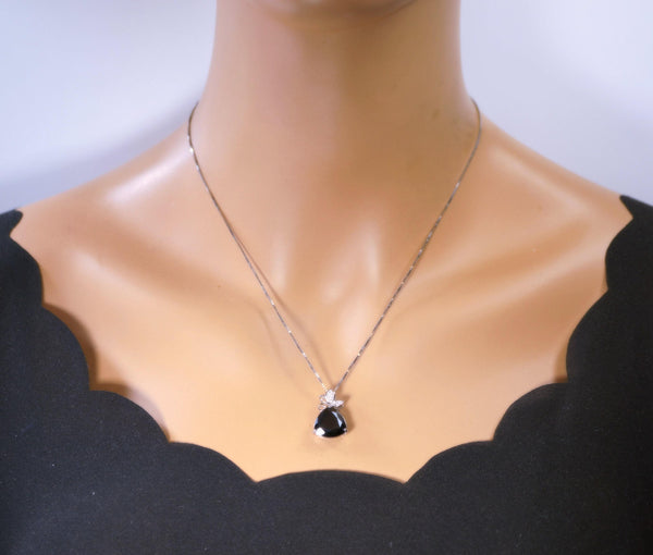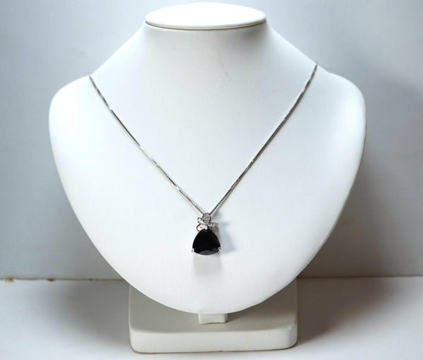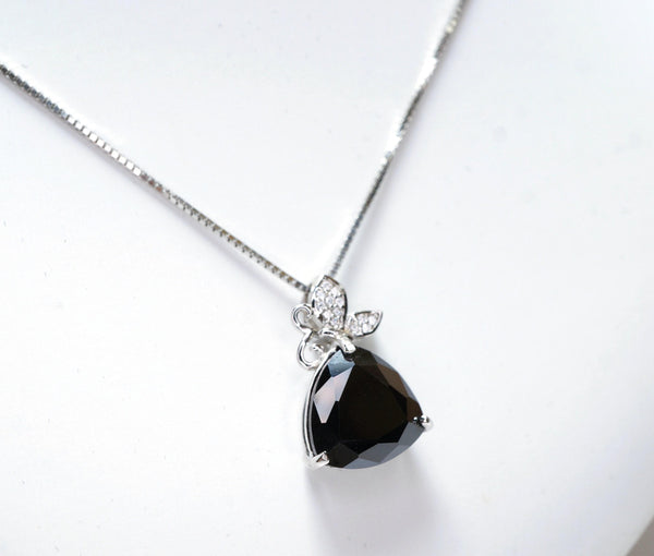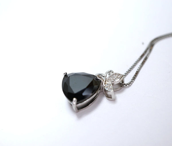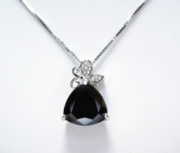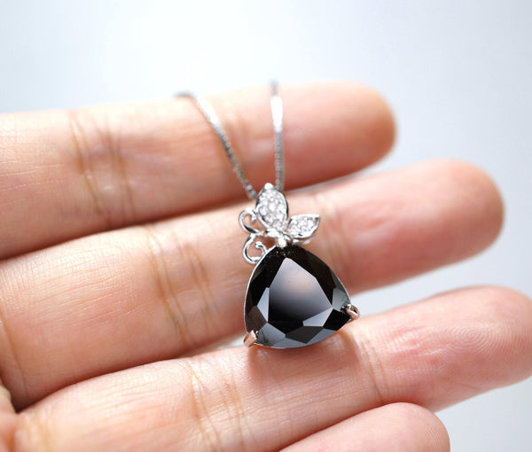 Trillion Black Cubic Zirconia Necklace Sterling Silver Butterfly , Jet Black CZ Necklace, Black Solitaire Pendant